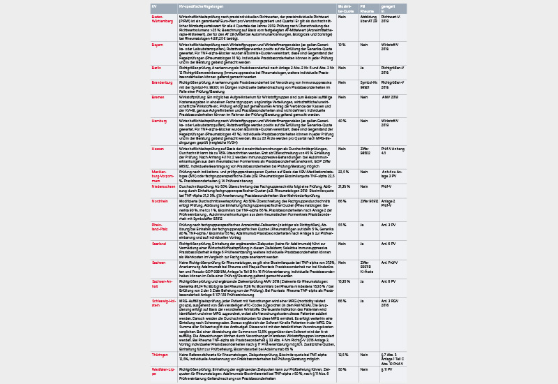 Die regionalen Kassenärztlichen Vereinigungen (KVen) halten für die Verordnung unterschiedliche Quoten vor, die für den jeweiligen Vertragsarzt unterschiedliche Bedeutungen haben (s. vorh. Tab.).